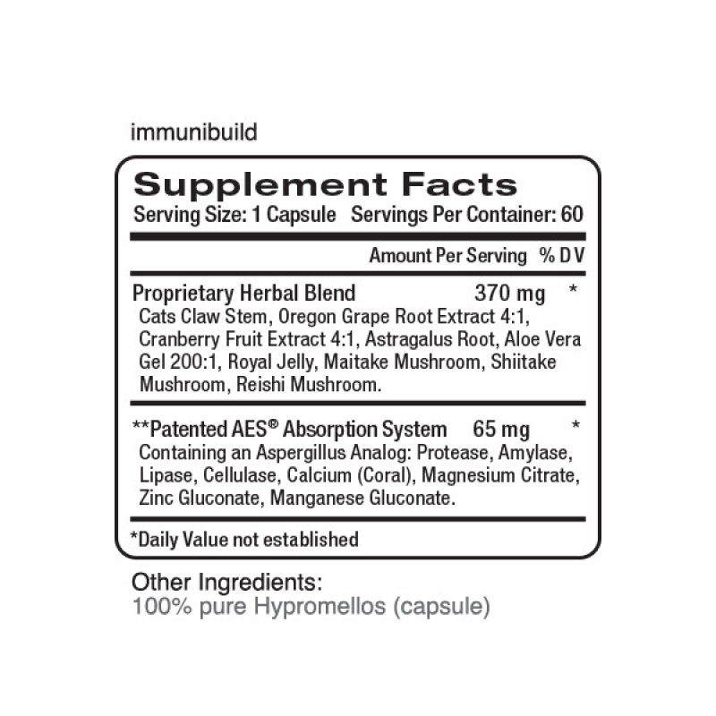 An immune modulator that assists the lymphatic system in secreting its fluids that control the amount of white blood cell activity. Immunibuild is unique in that it can be used on a daily basis unlike products that contain echinacea or other natural antibiotics. Immunibuild actually feeds the thymus that cleanses the lymphatic system insuring that your own body can produce and supply the right amount of white blood cells when necessary.